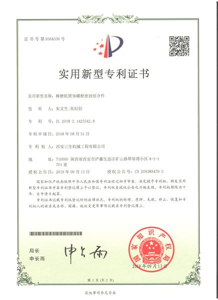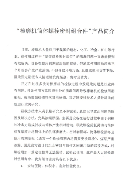 專利號:ZL 2018 2 1425342.8                    實用新型名稱:棒磨機筒體螺栓密封組合件